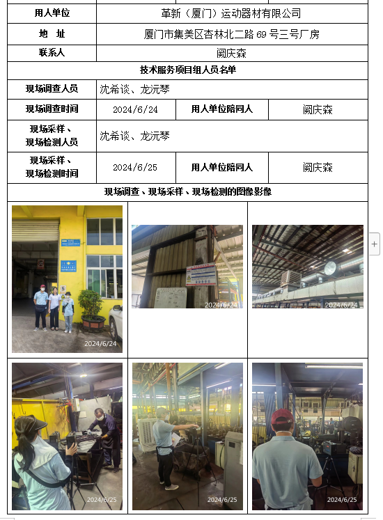 革新(廈門)運動器材有限公司-2024年工作場所職業病危害因素檢測