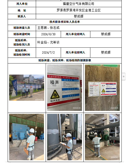 福建空分氣體有限公司-2024年工作場所職業病危害因素檢測