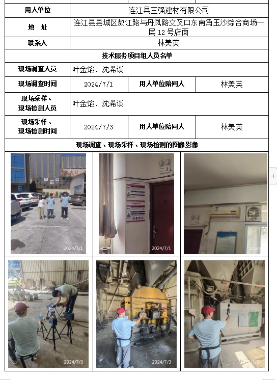 連江縣三強建材有限公司-2024年工作場所職業病危害因素檢測