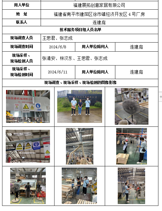 福建展拓創(chuàng)意家居有限公司-2024年工作場所職業(yè)病危害因素檢測