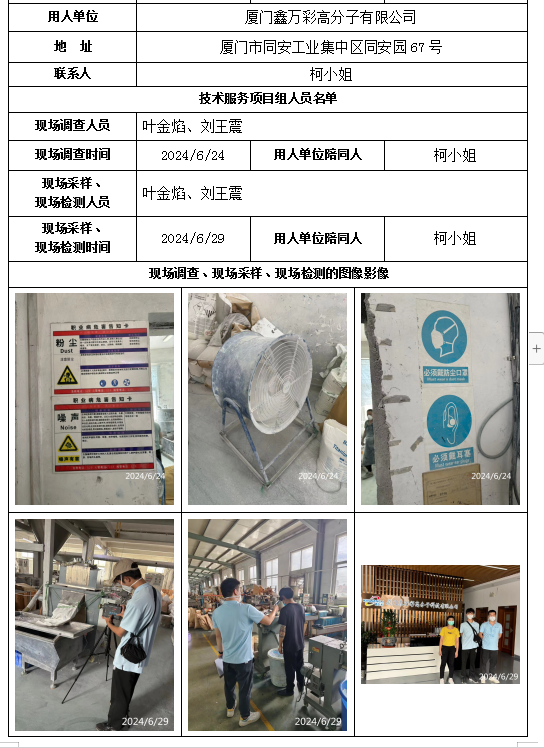 廈門鑫萬彩高分子有限公司-2024年工作場所職業病危害因素檢測