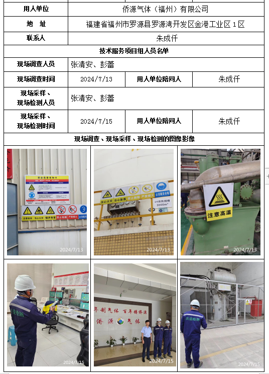 僑源氣體(福州)有限公司-2024年工作場(chǎng)所職業(yè)病危害因素檢測(cè)