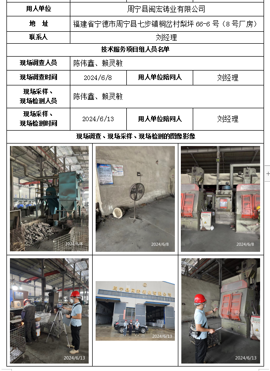 周寧縣閩宏鑄業(yè)有限公司-2024年工作場所職業(yè)病危害因素檢測