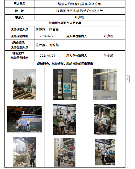 福建省海源智能裝備有限公司-2024年工作場所職業病危害因素檢測