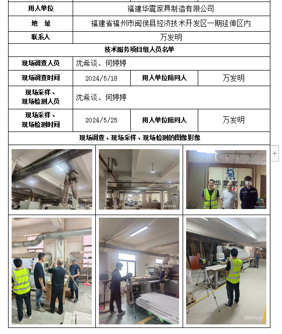 福建華震家具制造有限公司-2024年工作場所職業(yè)病危害因素檢測