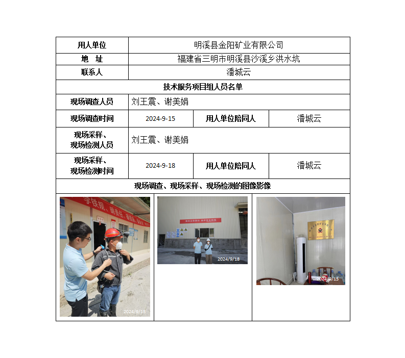明溪縣金陽礦業有限公司-2024年工作場所職業病危害因素檢測