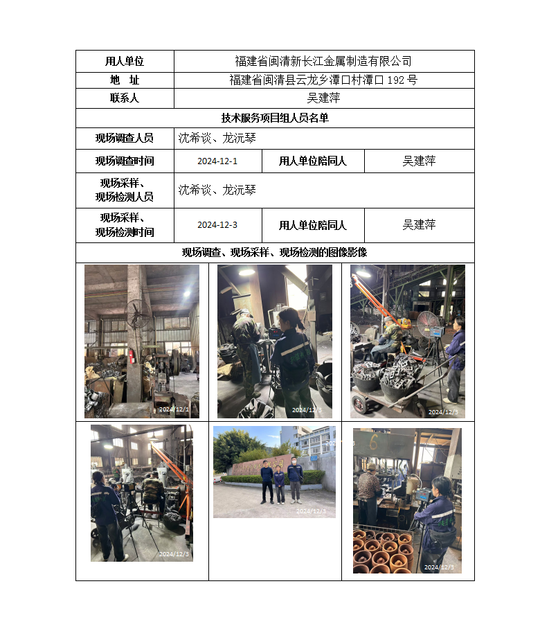 福建省閩清新長(zhǎng)江金屬制造有限公司-2024年工作場(chǎng)所職業(yè)病危害因素檢測(cè)