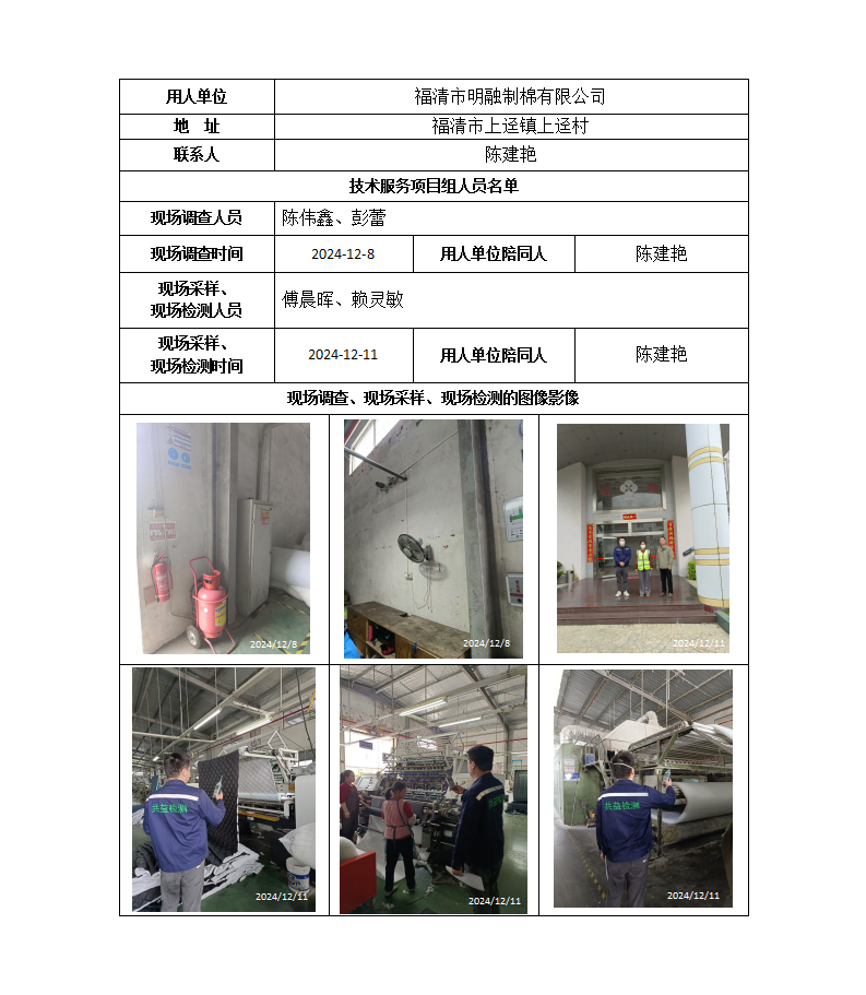 福清明融制棉有限公司-2024年工作場所職業病危害因素檢測