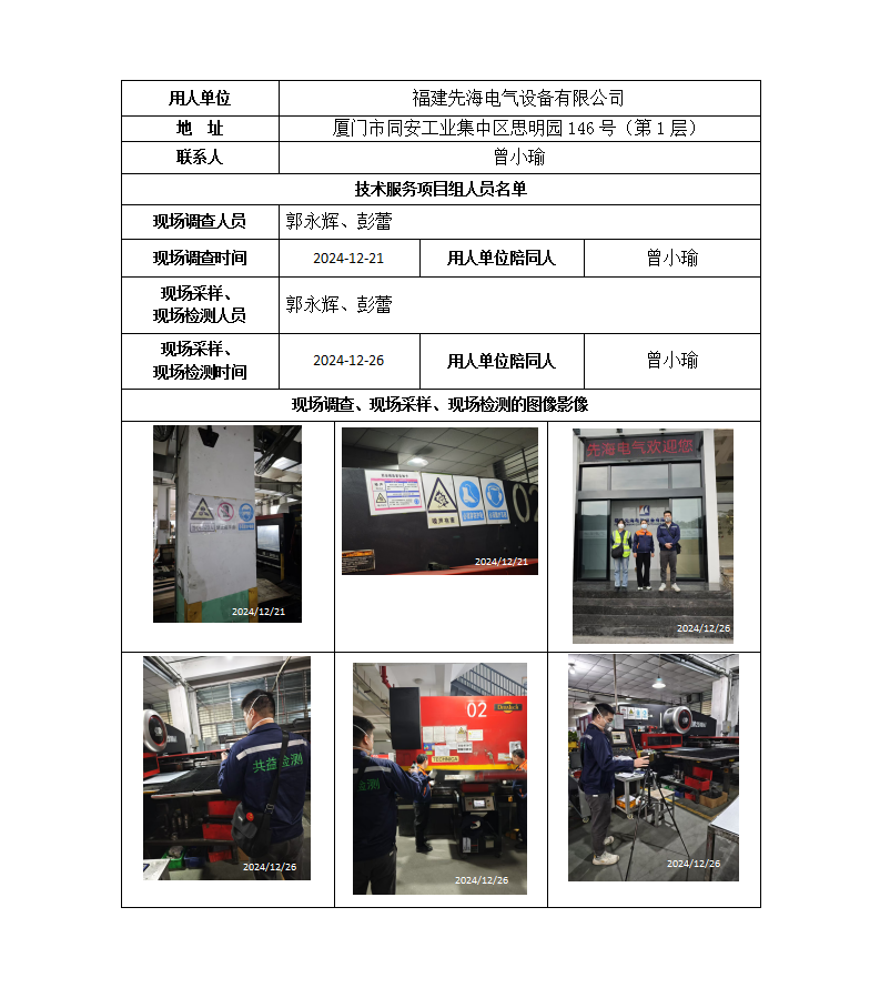 福建先海電氣設備有限公司-2024年工作場所職業病危害因素檢測