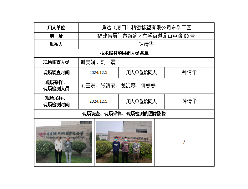通達(廈門)精密橡塑有限公司東孚廠區-2024年職業病危害現狀評價