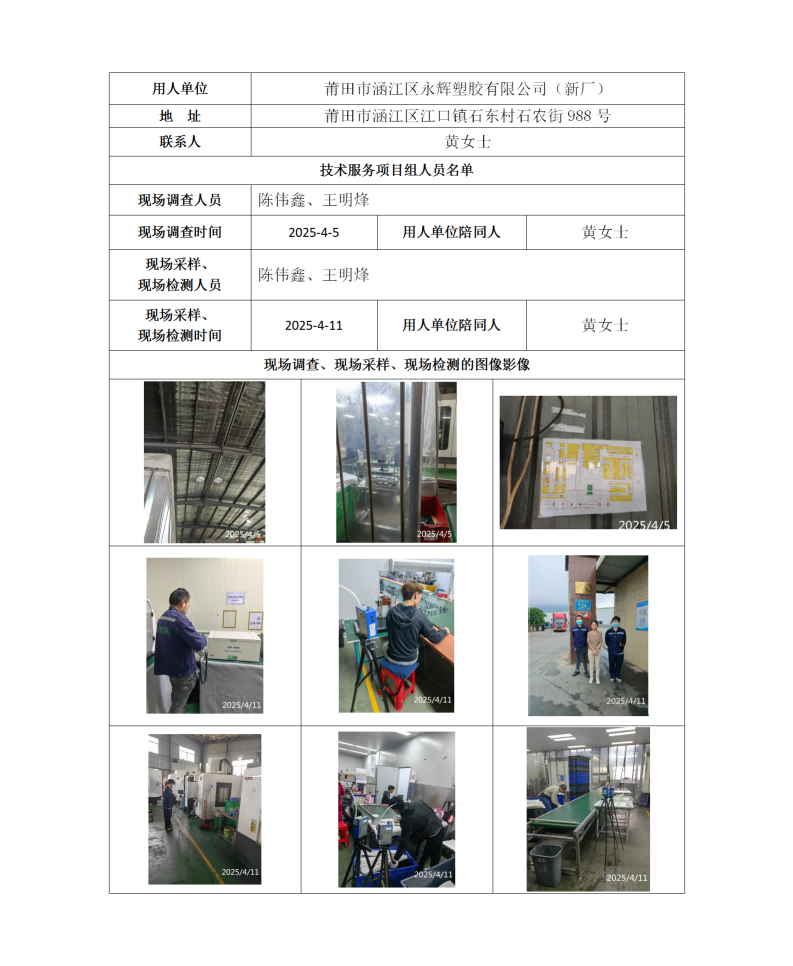 莆田市涵江區永輝塑膠有限公司(新廠)-2025年工作場所職業病危害因素檢測
