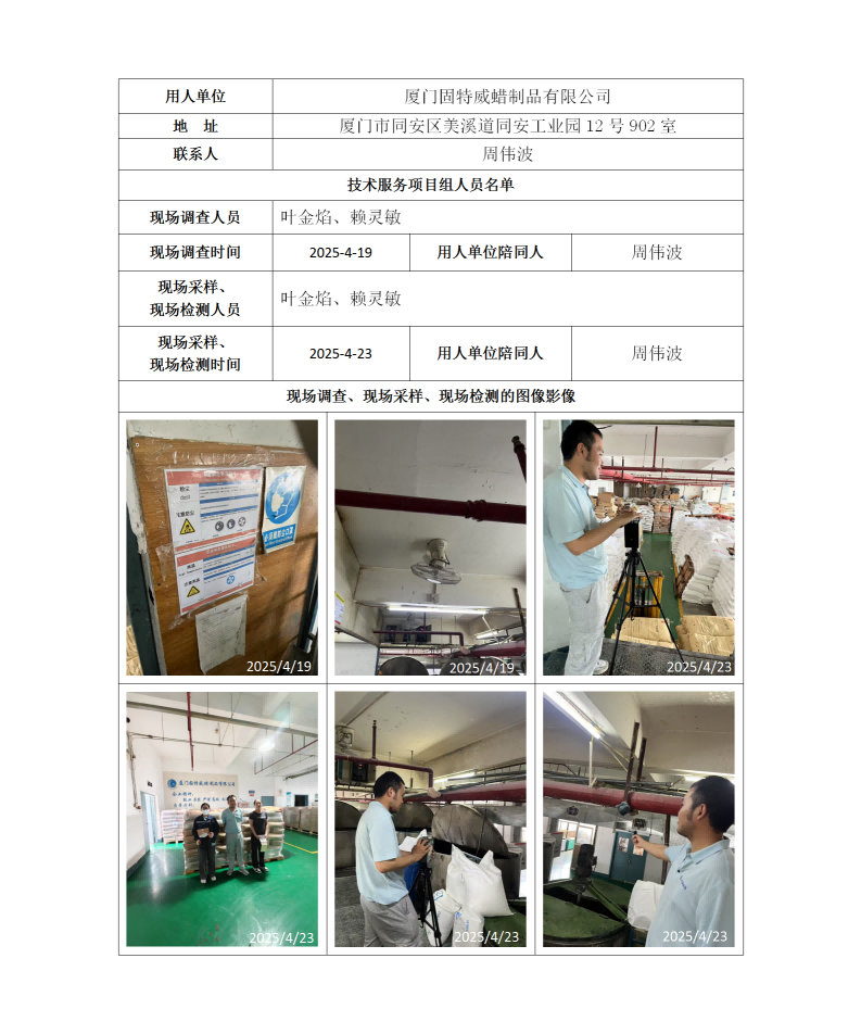 廈門固特威蠟制品有限公司-2025年工作場所職業(yè)病危害因素檢測