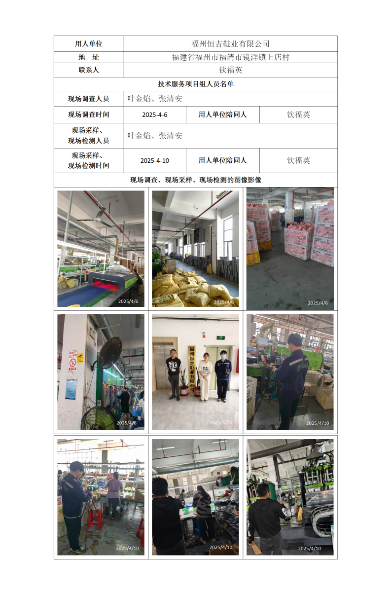 福州恒吉鞋業有限公司-2025年工作場所職業病危害因素檢測