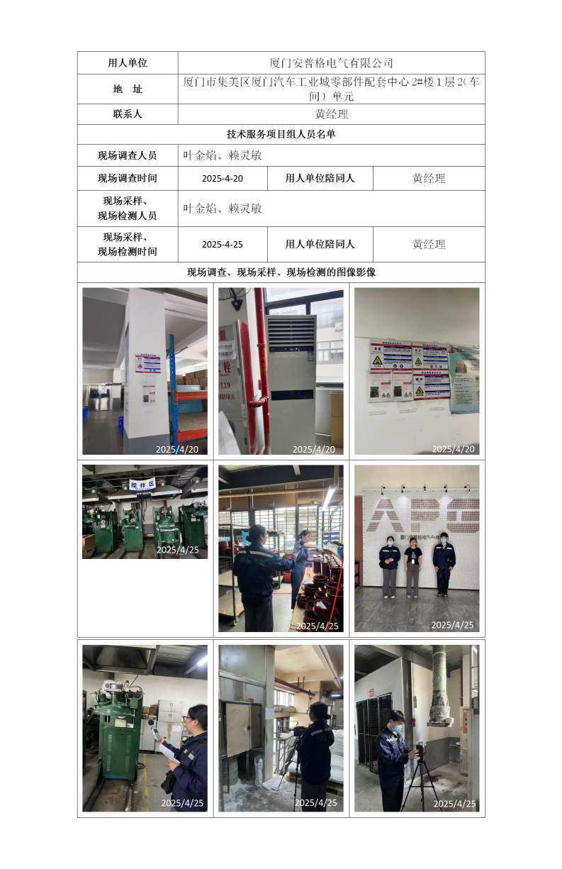 廈門(mén)安普格電氣有限公司-2025年工作場(chǎng)所職業(yè)病危害因素檢測(cè)