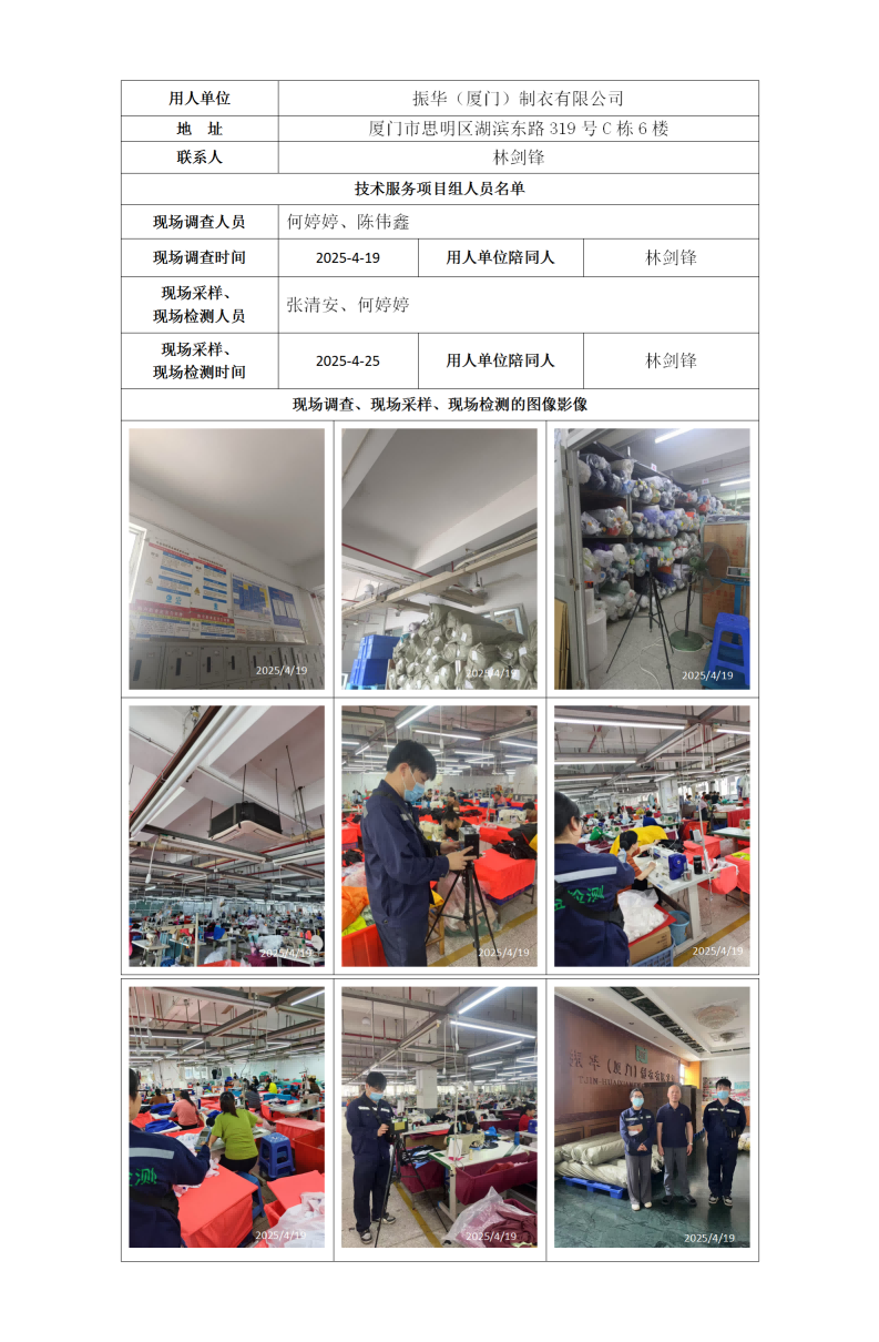 振華(廈門)制衣有限公司-2025年工作場所職業(yè)病危害因素檢測