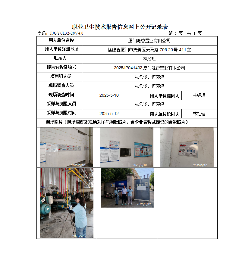 廈門源香置業有限公司-2025年工作場所職業病危害因素檢測