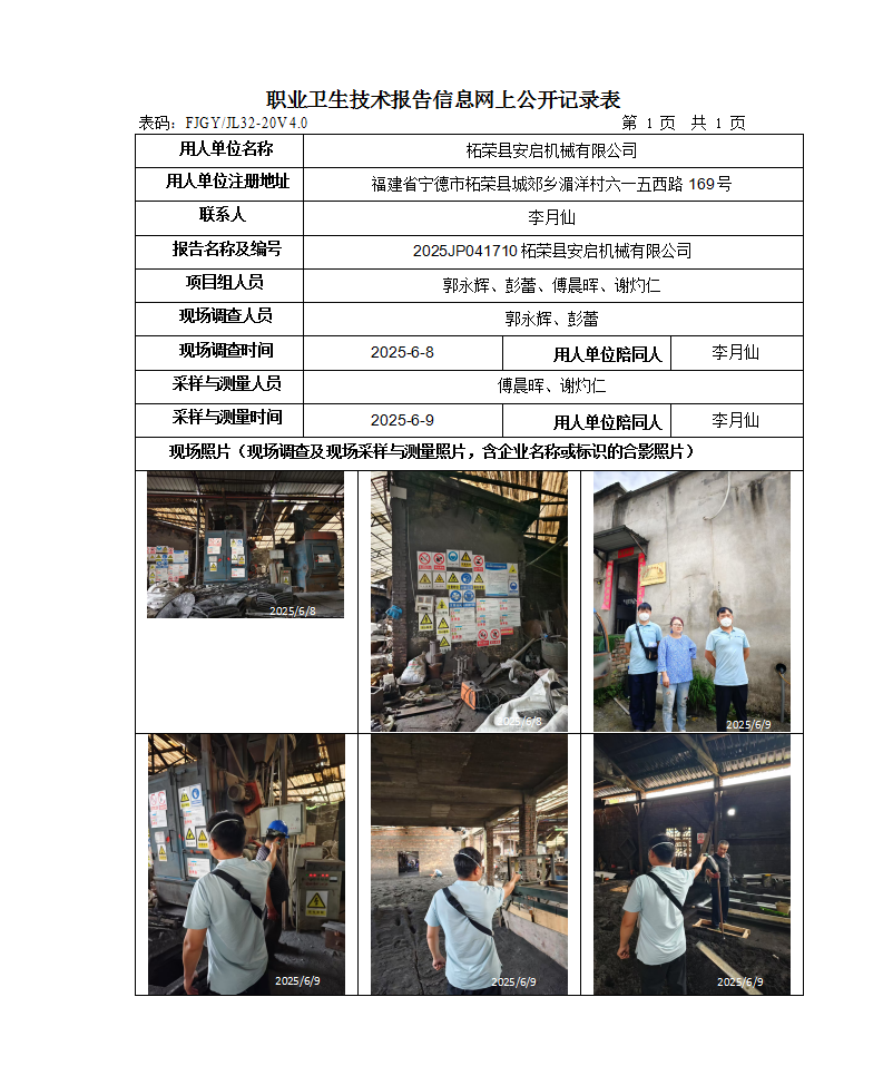 柘榮縣安啟機械有限公司-2025年工作場所職業病危害因素檢測