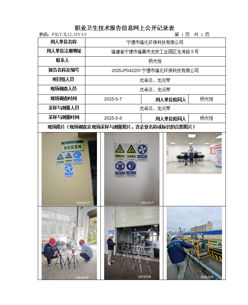 寧德市福化環保科技有限公司-2025年工作場所職業病危害因素檢測
