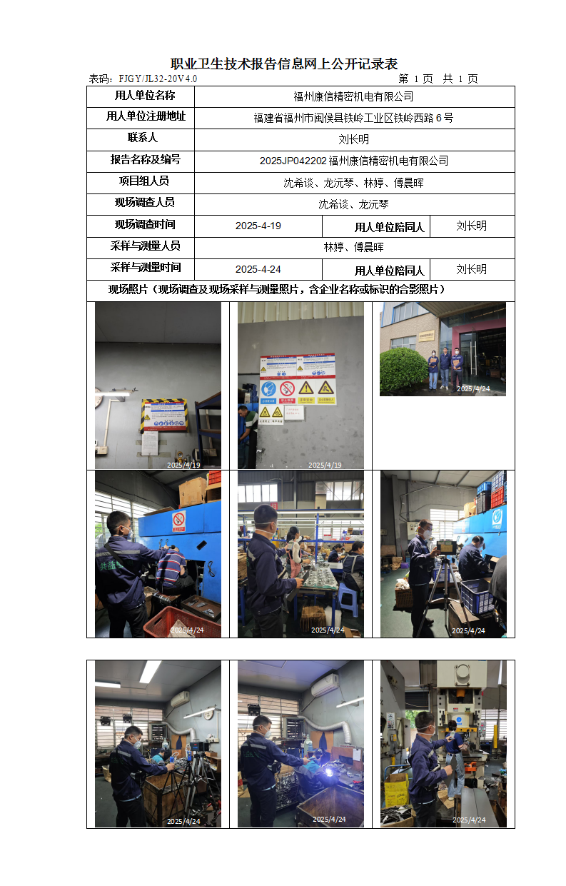 福州康信精密機電有限公司-2025年工作場所職業(yè)病危害因素檢測