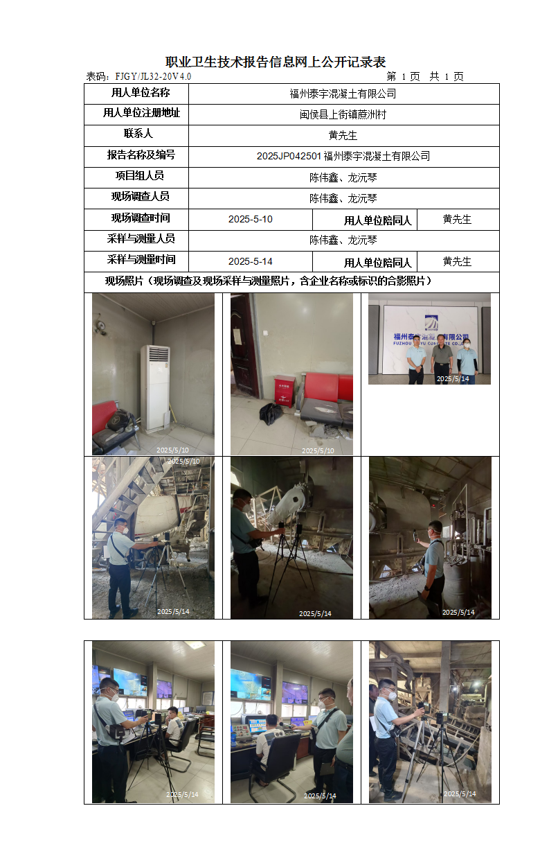 福州泰宇混凝土有限公司-2025年工作場所職業病危害因素檢測