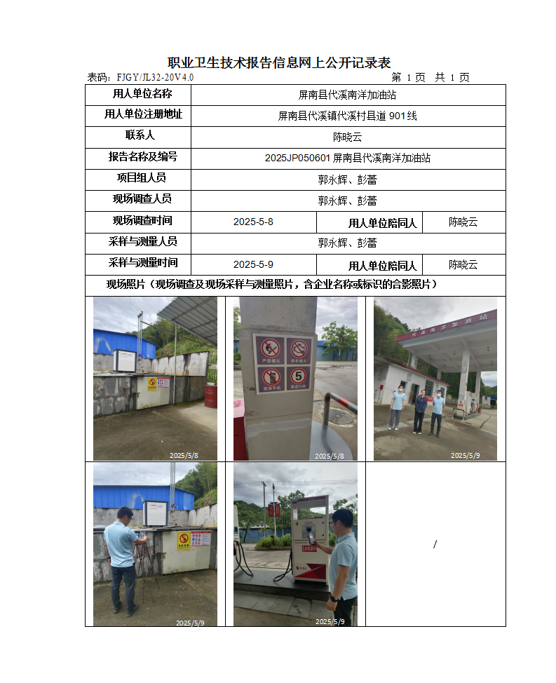 屏南縣代溪南洋加油站-2025年工作場所職業病危害因素檢測