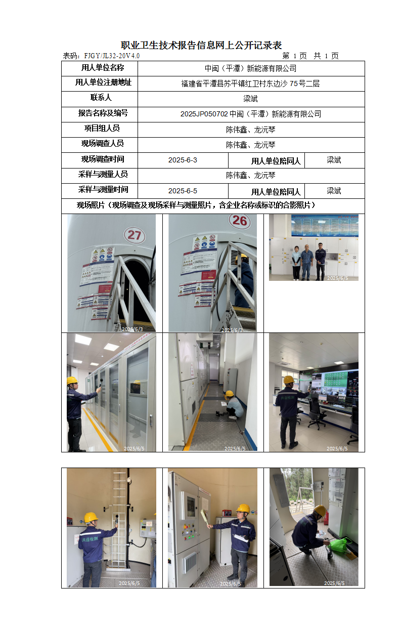 中閩(平潭)新能源有限公司-2025年工作場所職業病危害因素檢測