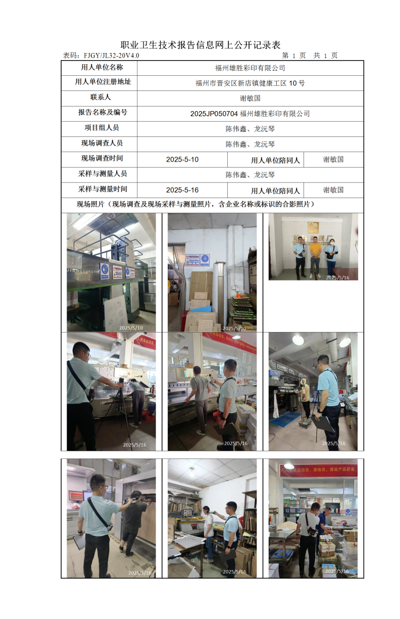 福州雄勝彩印有限公司-2025年工作場所職業病危害因素檢測