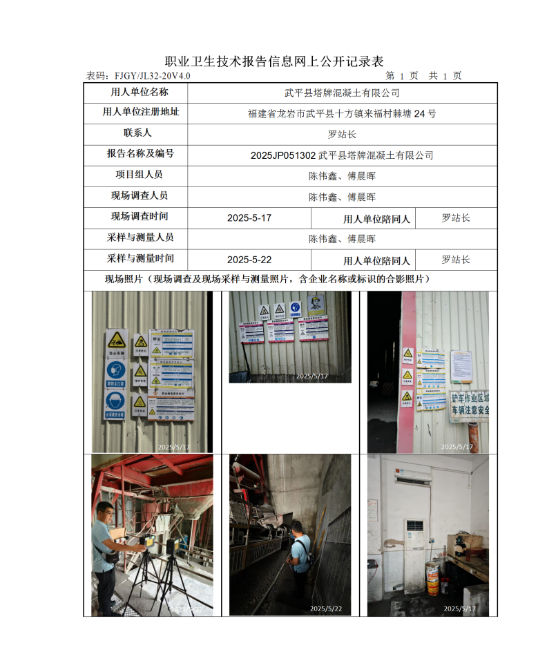 武平縣塔牌混凝土有限公司-2025年工作場(chǎng)所職業(yè)病危害因素檢測(cè)