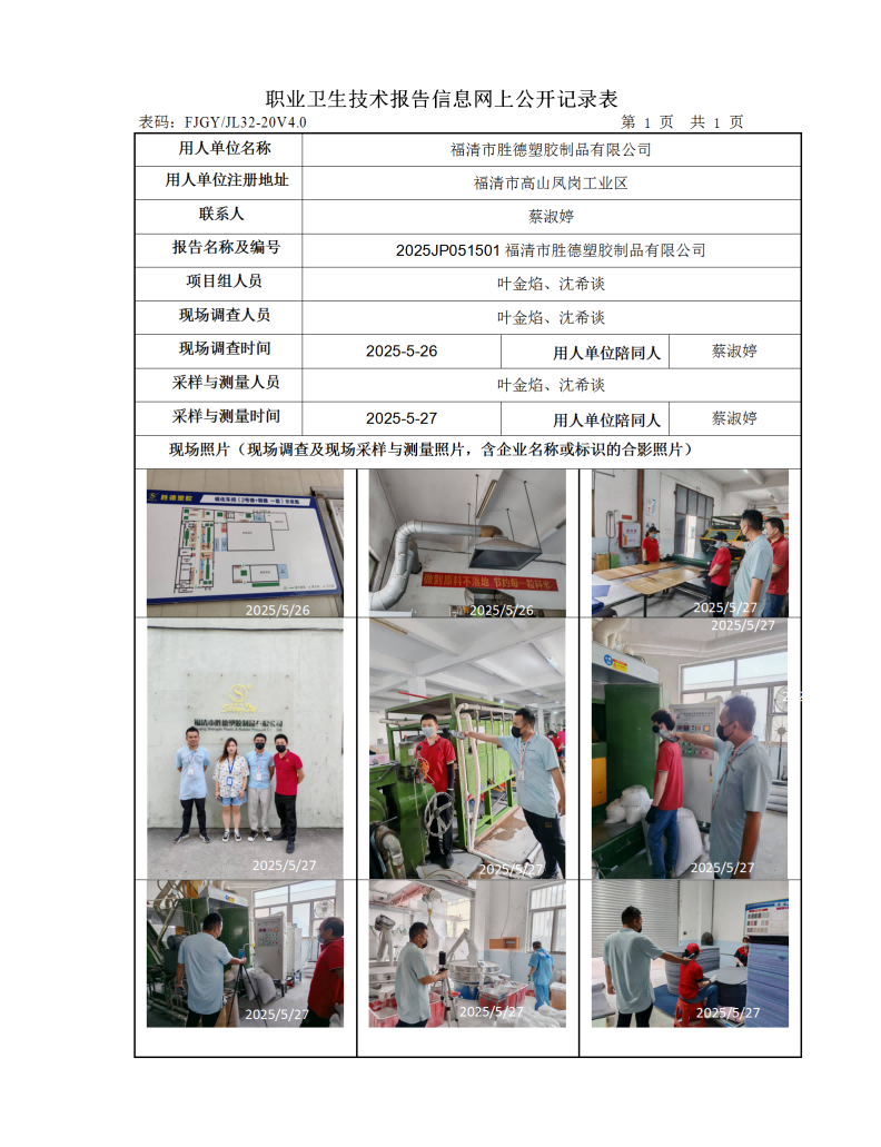 福清市勝德塑膠制品有限公司-2025年工作場所職業病危害因素檢測