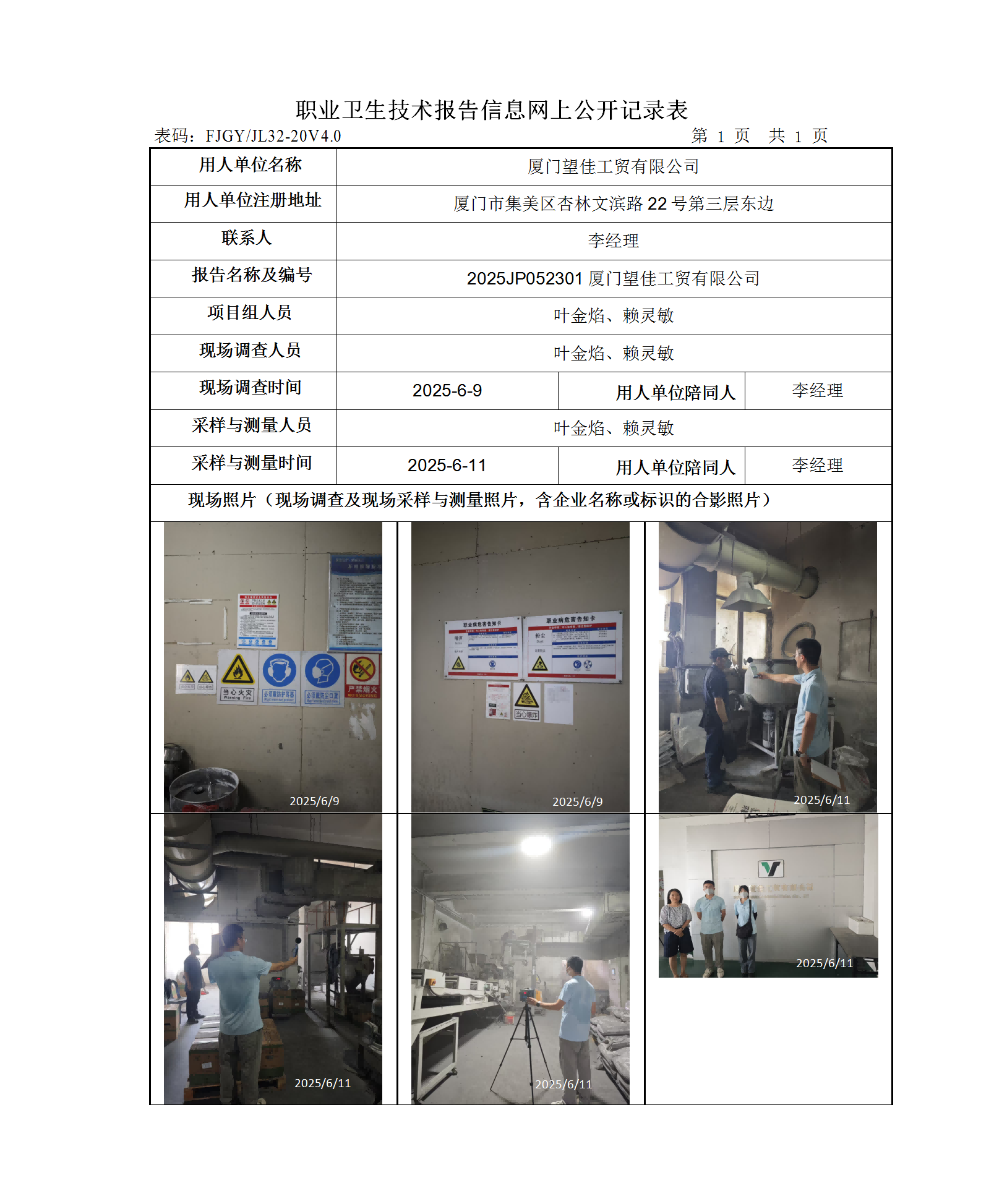 廈門望佳工貿有限公司-2025年工作場所職業病危害因素檢測