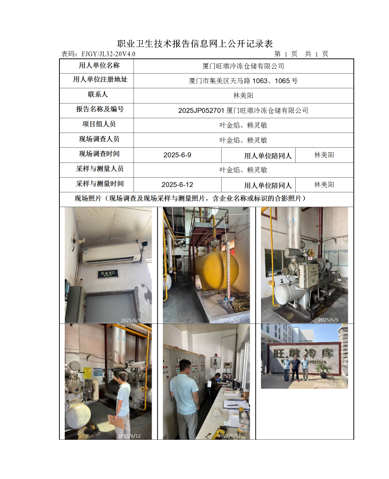 廈門旺墩冷凍倉儲有限公司-2025年工作場所職業病危害因素檢測
