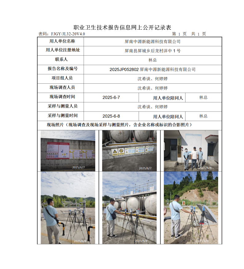 屏南中源新能源科技有限公司-2025年工作場所職業病危害因素檢測