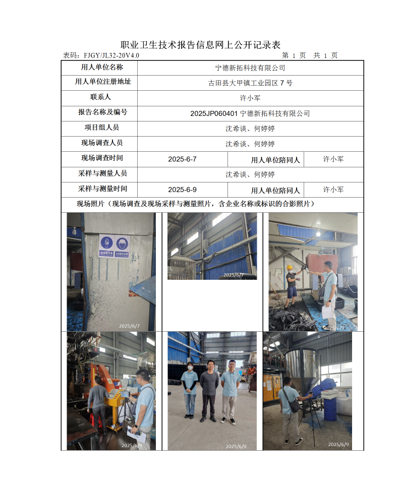 寧德新拓科技有限公司-2025年工作場所職業病危害因素檢測