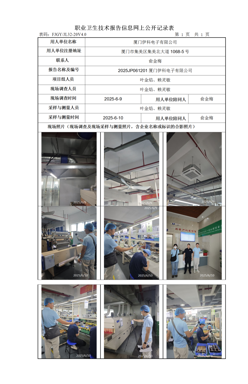 廈門伊科電子有限公司-2025年工作場所職業病危害因素檢測
