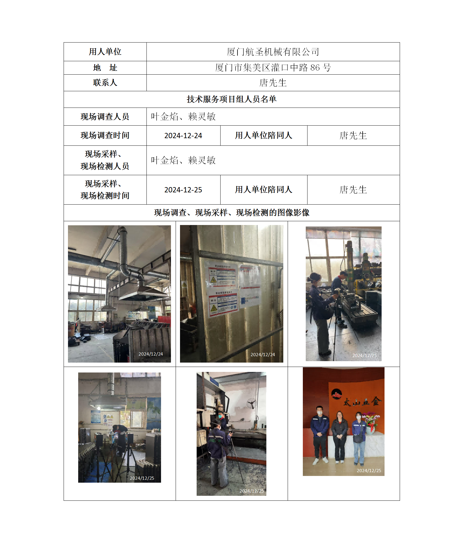 廈門航圣機械有限公司-2024年工作場所職業病危害因素檢測