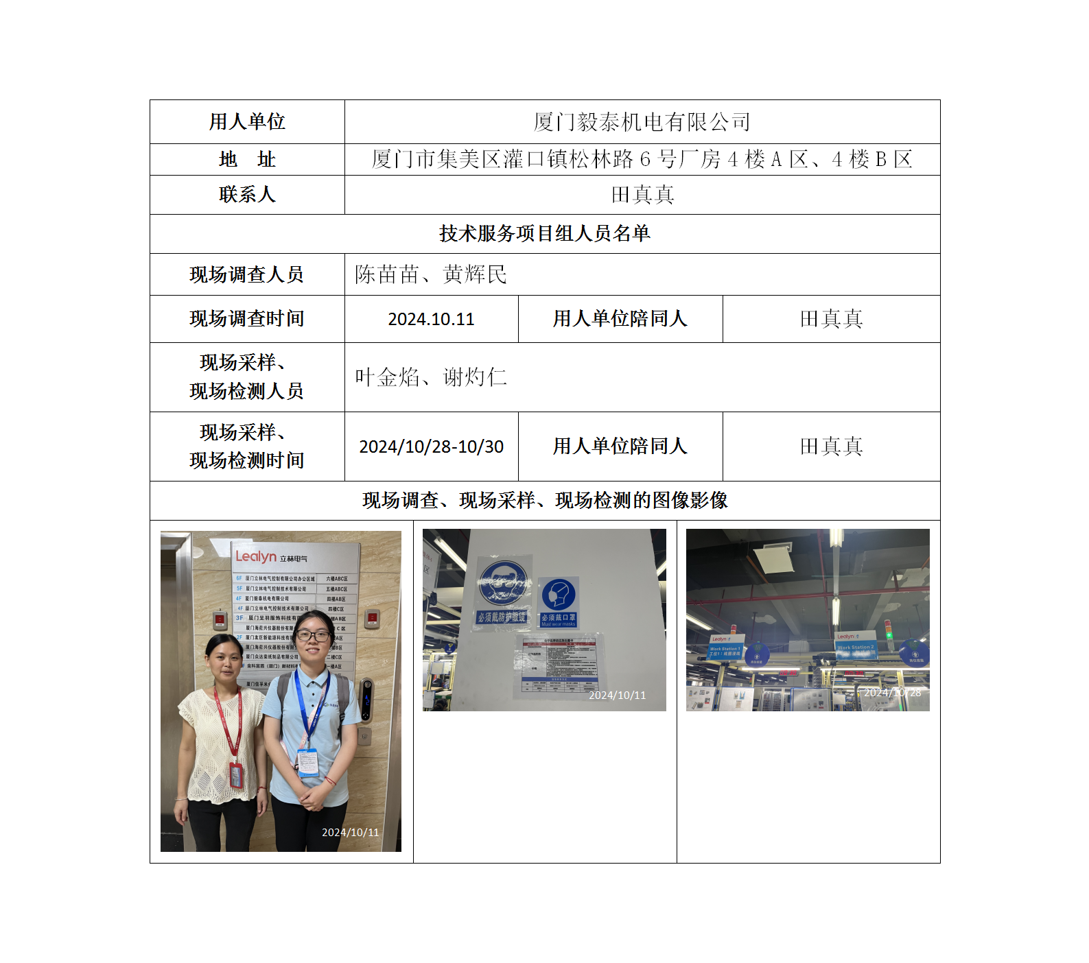 廈門毅泰機電有限公司-2024年職業病危害現狀評價