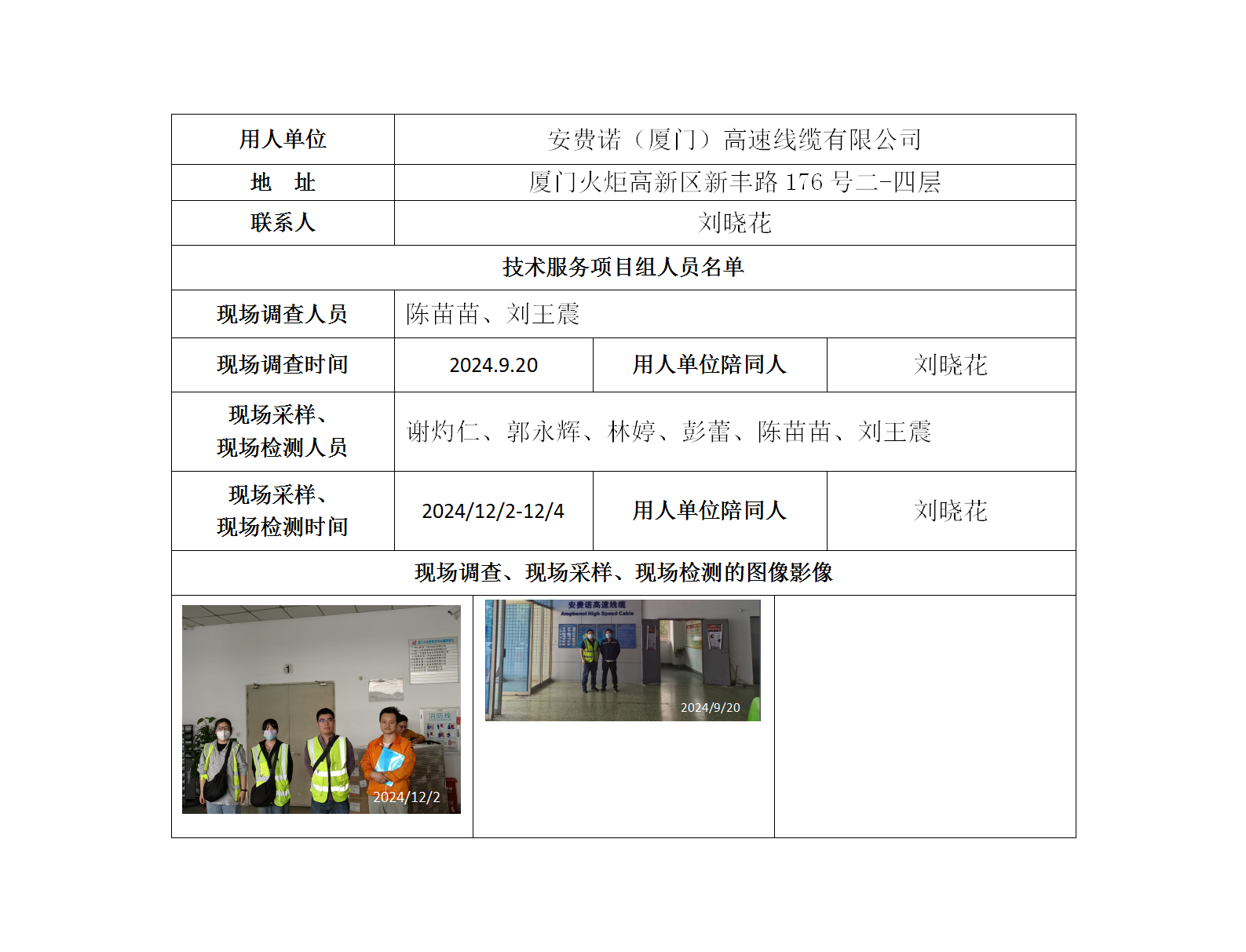 安費諾(廈門)高速線纜有限公司-2024年職業病危害現狀評價