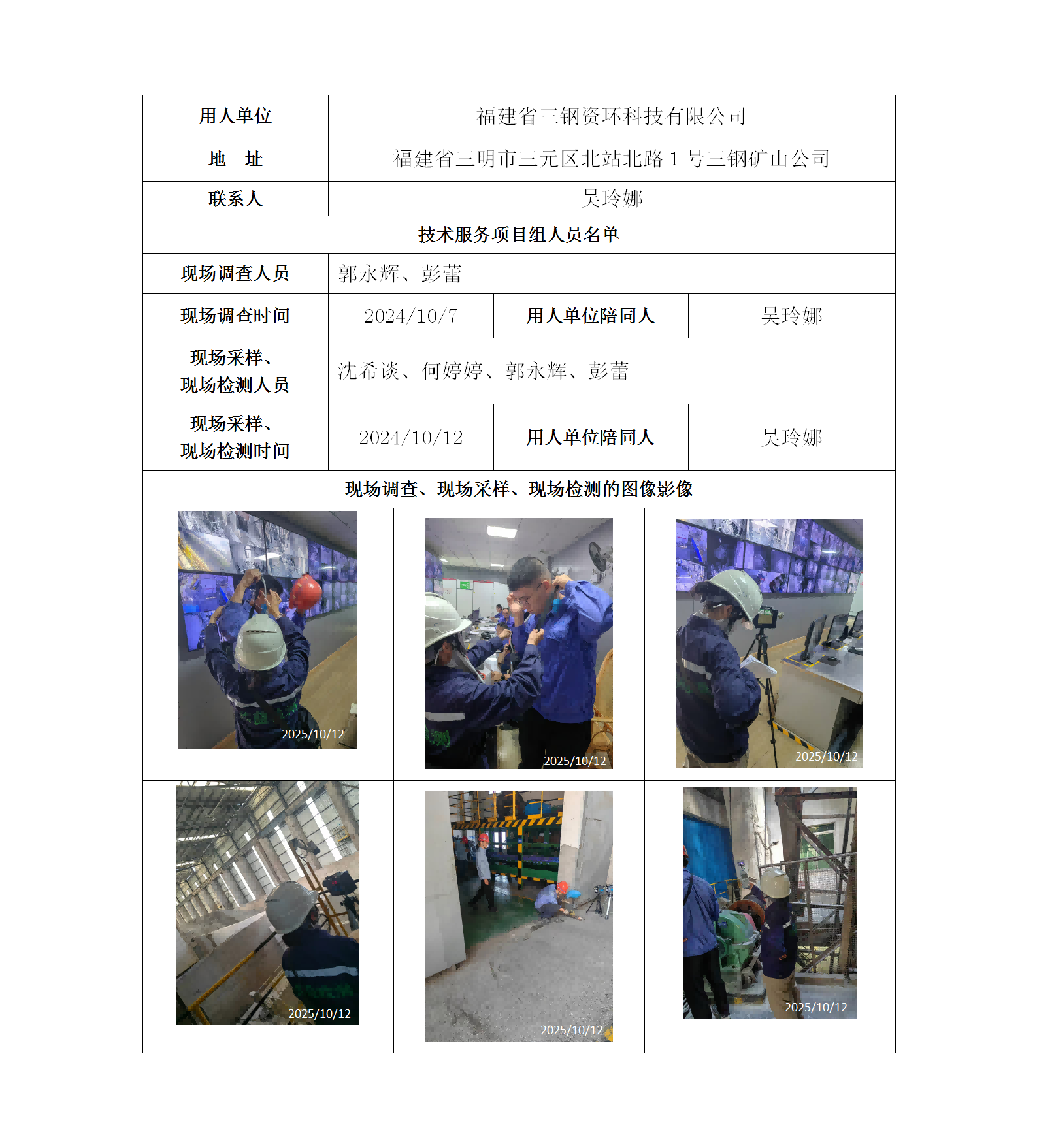 福建省三鋼資環(huán)科技有限公司-2024年工作場所職業(yè)病危害因素檢測