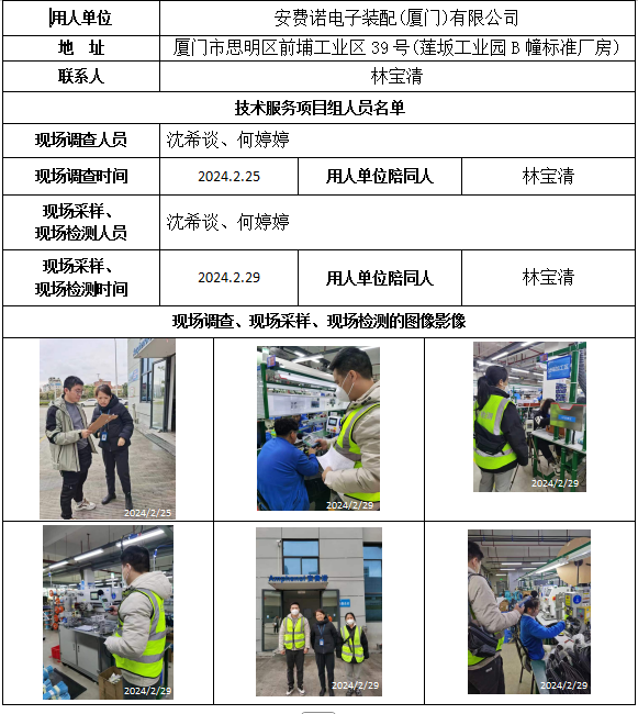 安費諾電子裝配(廈門)有限公司-2024年工作場所職業病危害因素檢測