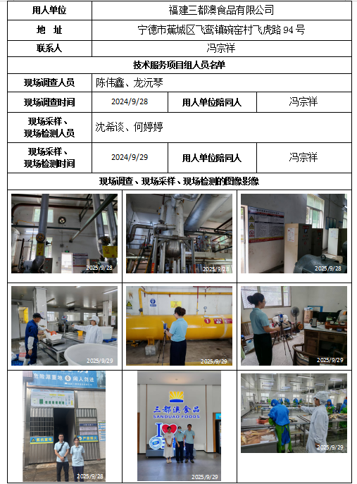 福建三都澳食品有限公司-2024年工作場所職業病危害因素檢測