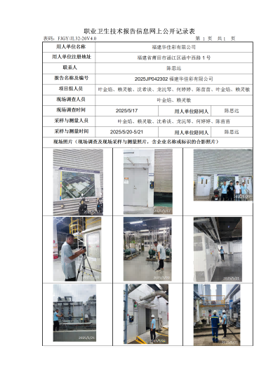 福建華佳彩有限公司-2025年工作場所職業(yè)病危害因素檢測