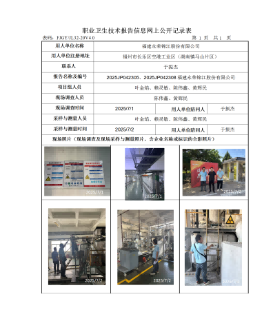福建永榮錦江股份有限公司-2025年工作場所職業病危害因素檢測