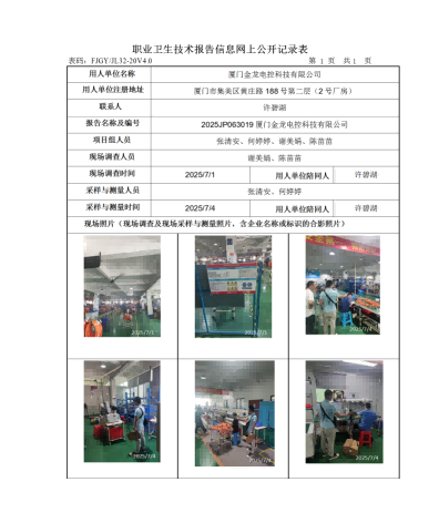廈門金龍電控科技有限公司-2025年工作場所職業病危害因素檢測