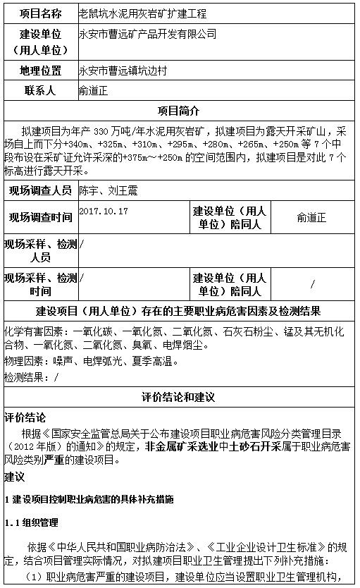 永安市曹遠礦產品開發(fā)有限公司職業(yè)病危害預評價