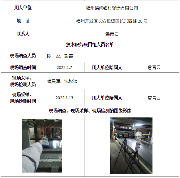 福州瑞閩鋁材彩涂有限公司2022年工作場所職業病危害因素檢測-福建共益安全環保科技