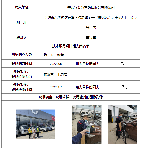 寧德駿菱汽車銷售服務有限公司工作場所職業病危害因素檢測-福建共益安全環保科技