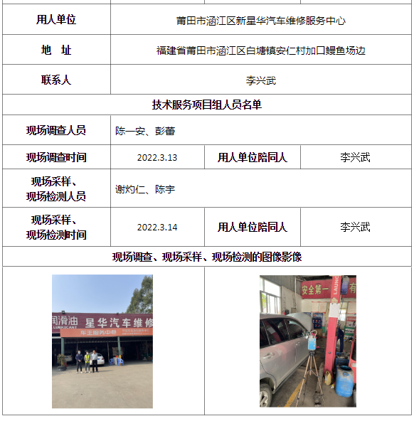 莆田市涵江區新星華汽車維修服務中心工作場所職業病危害因素檢測-福建共益安全環保科技