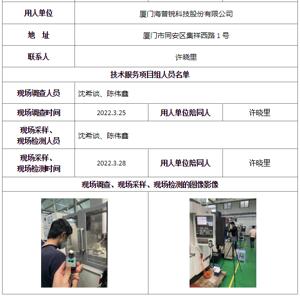 廈門海普銳科技股份有限公司工作場所職業病危害因素檢測-福建共益安全環保科技