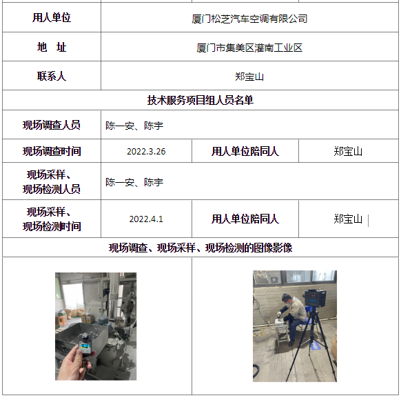 廈門松芝汽車空調有限公司工作場所職業病危害因素檢測-福建共益安全環保科技