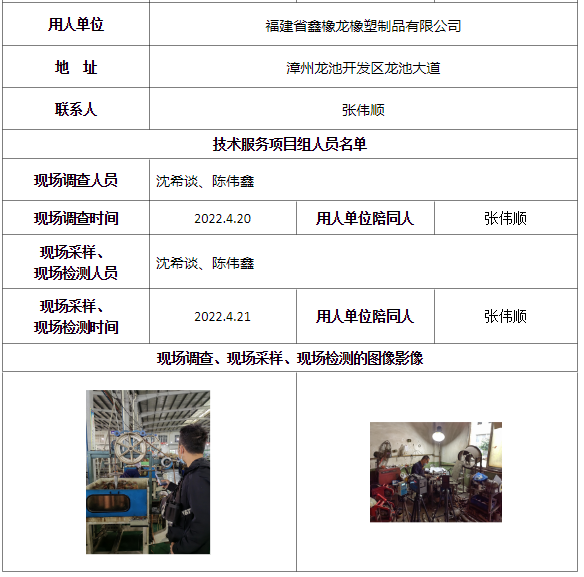 福建省鑫橡龍橡塑制品有限公司工作場所職業(yè)病危害因素檢測-福建共益安全環(huán)??萍?/strong>